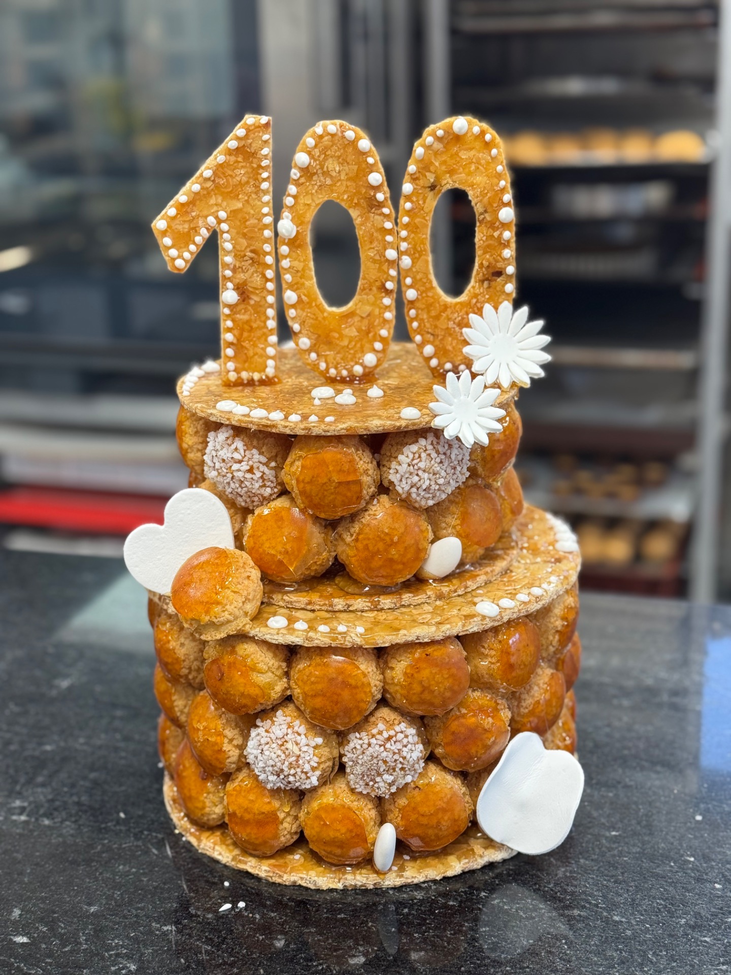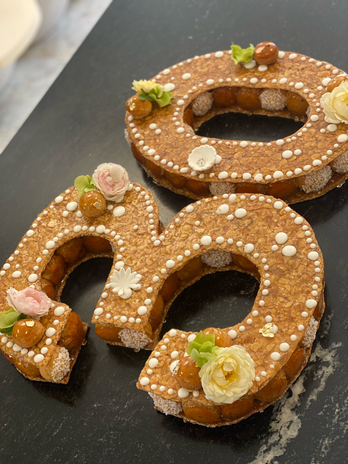 Afin de vous garantir des produits frais et entièrement faits maison, les commandes doivent être passées entre 48 et 72 heures à l'avance pour les pâtisseries, environ une semaine à l'avance pour les buffets salés, et parfois plusieurs semaines pour une pièce montée selon la demande et la saison.