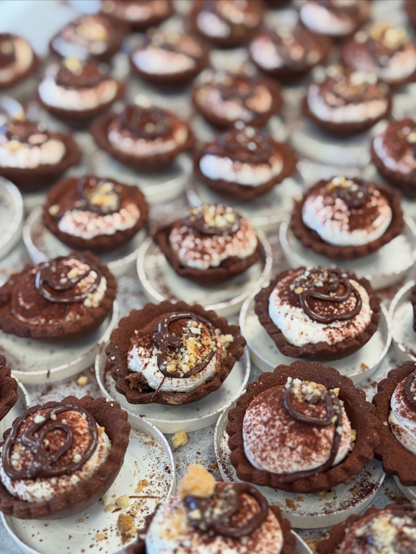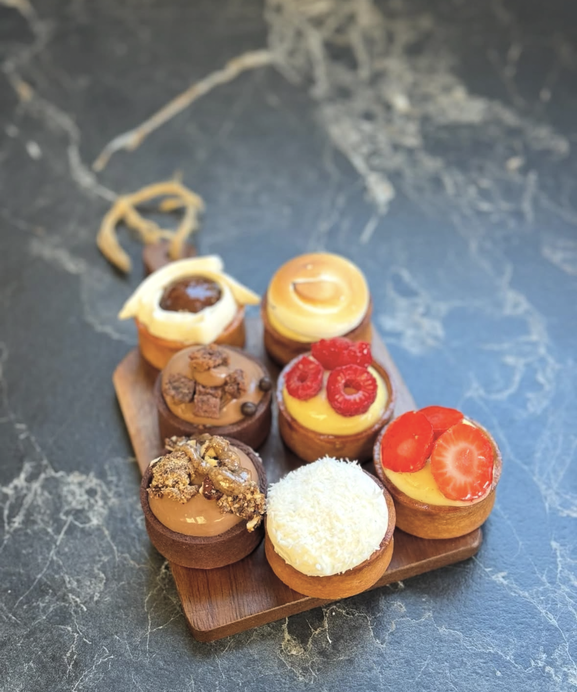 Mais aussi des minis tartes Chocolat brownies, Noisettes caramélisées & praliné maison, la Coco passion mangue, Pistache framboises, Tiramisu, la Peche ou la Figue...
