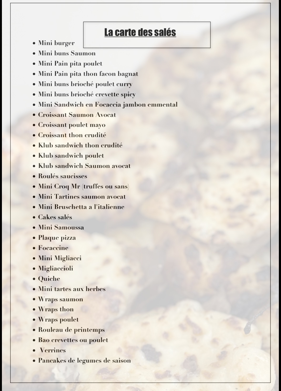 N'hésitez pas à faire votre choix sur la carte salé du moment.