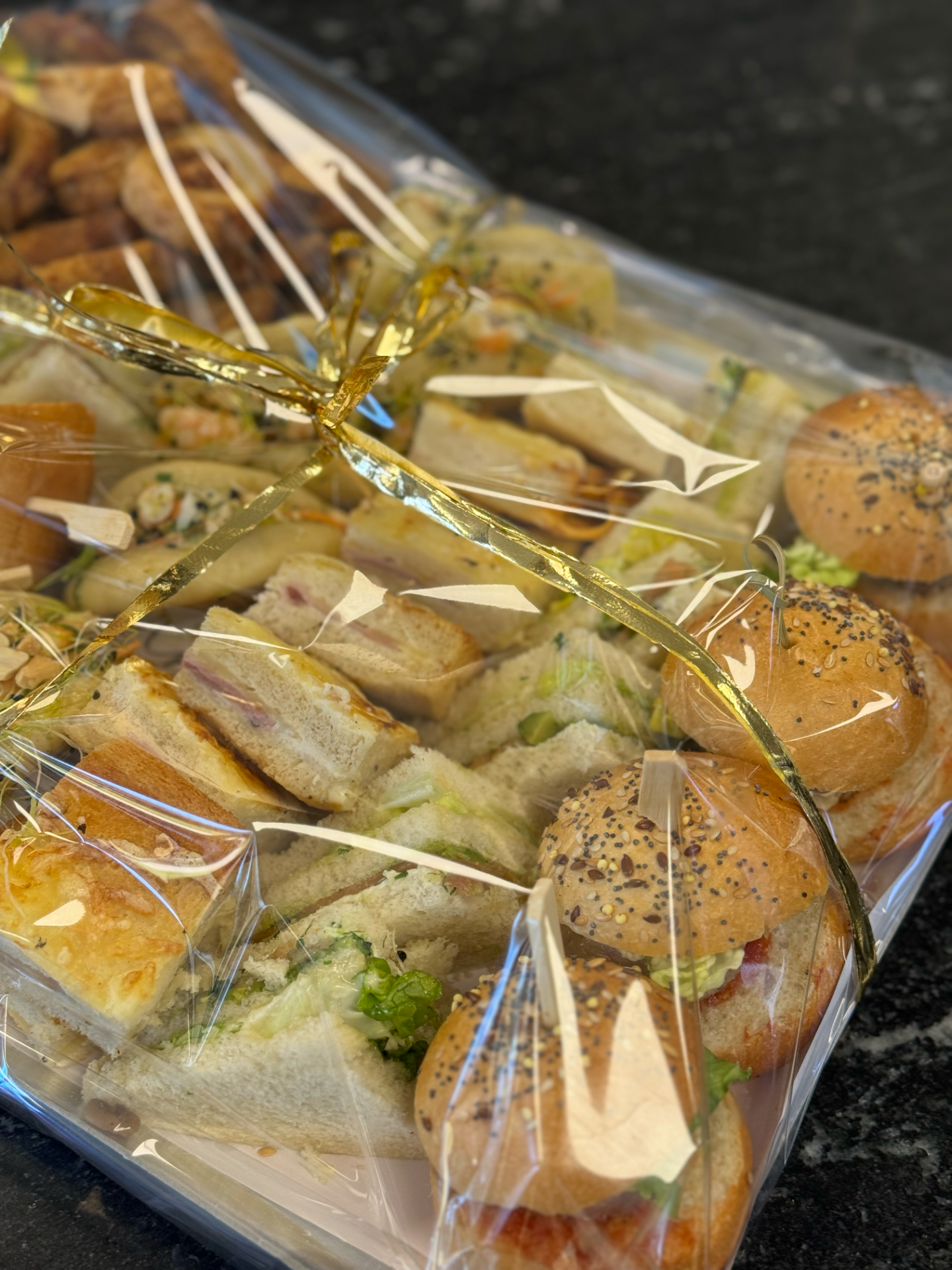 Les salés sont livrés sur plateaux dans des boites traiteurs.